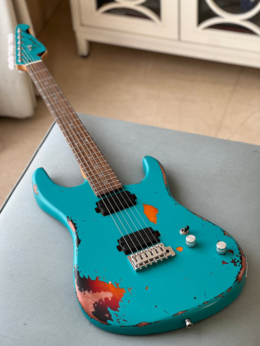 Dhatarattha Performance DST HH in Electric Blue Over Black Paisley with RW FB and Nitrocellulose Lacquer Relic