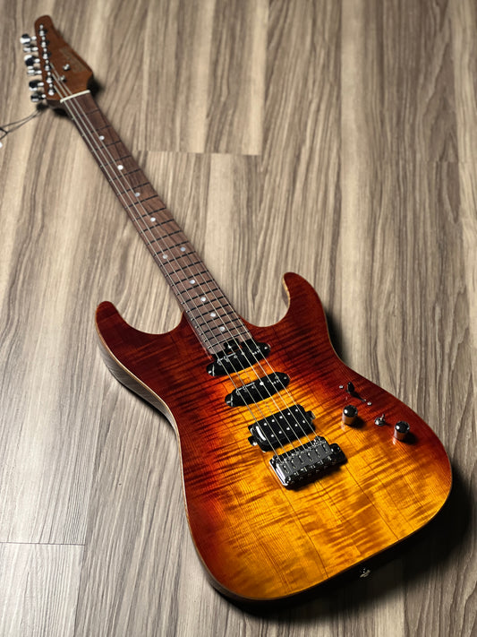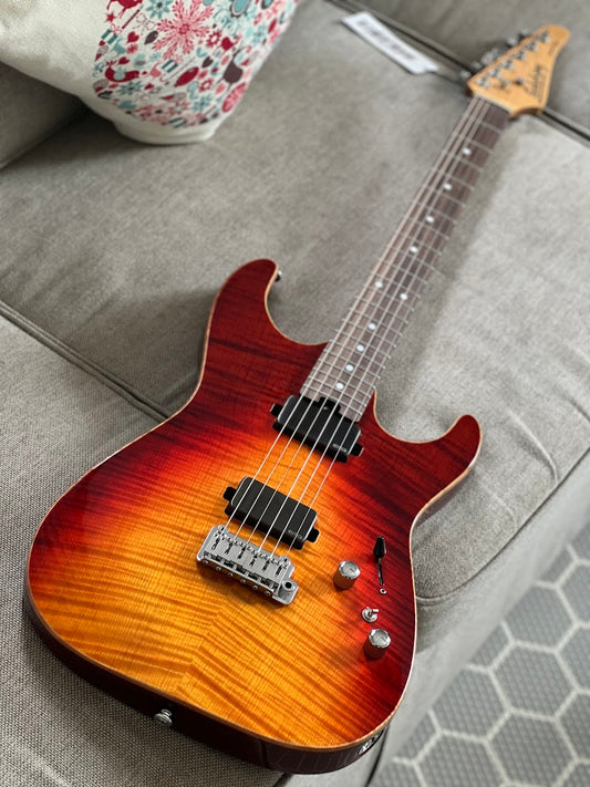 Soloking MS-1 Custom 22 HSS Flat Top One Piece Roasted Flame Neck in Bengal Burst Nafiri Special Run
