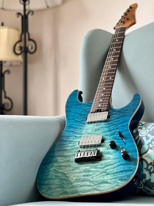 Soloking MS-1 Custom 22 HSS Flat Top Elite with Rosewood FB in Bora Blue Surf