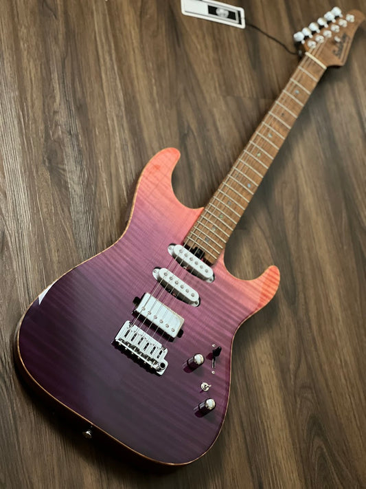 Soloking MS-1 Custom 22 HSS Flat Top Elite with One Piece Roasted Flame Neck in Purple Surf