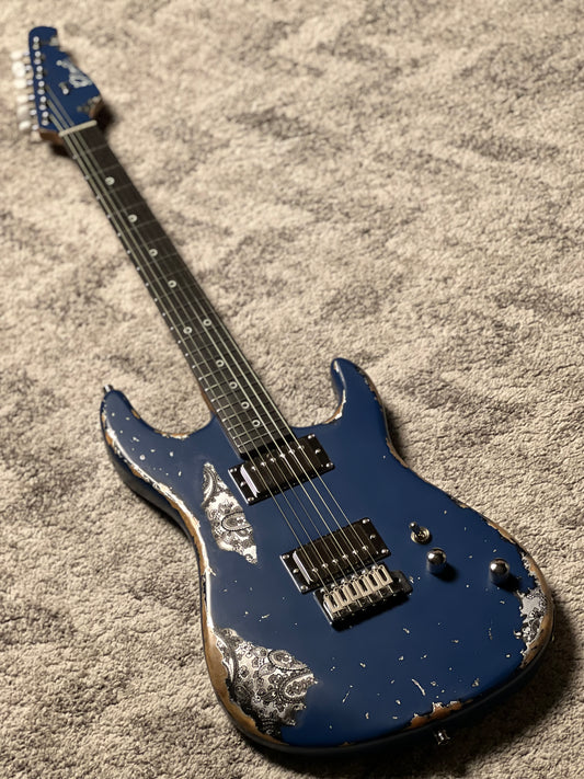 Dhatarattha Performance DST HH in Navy Blue Over Black Paisley with RW FB and Nitrocellulose Lacquer Relic