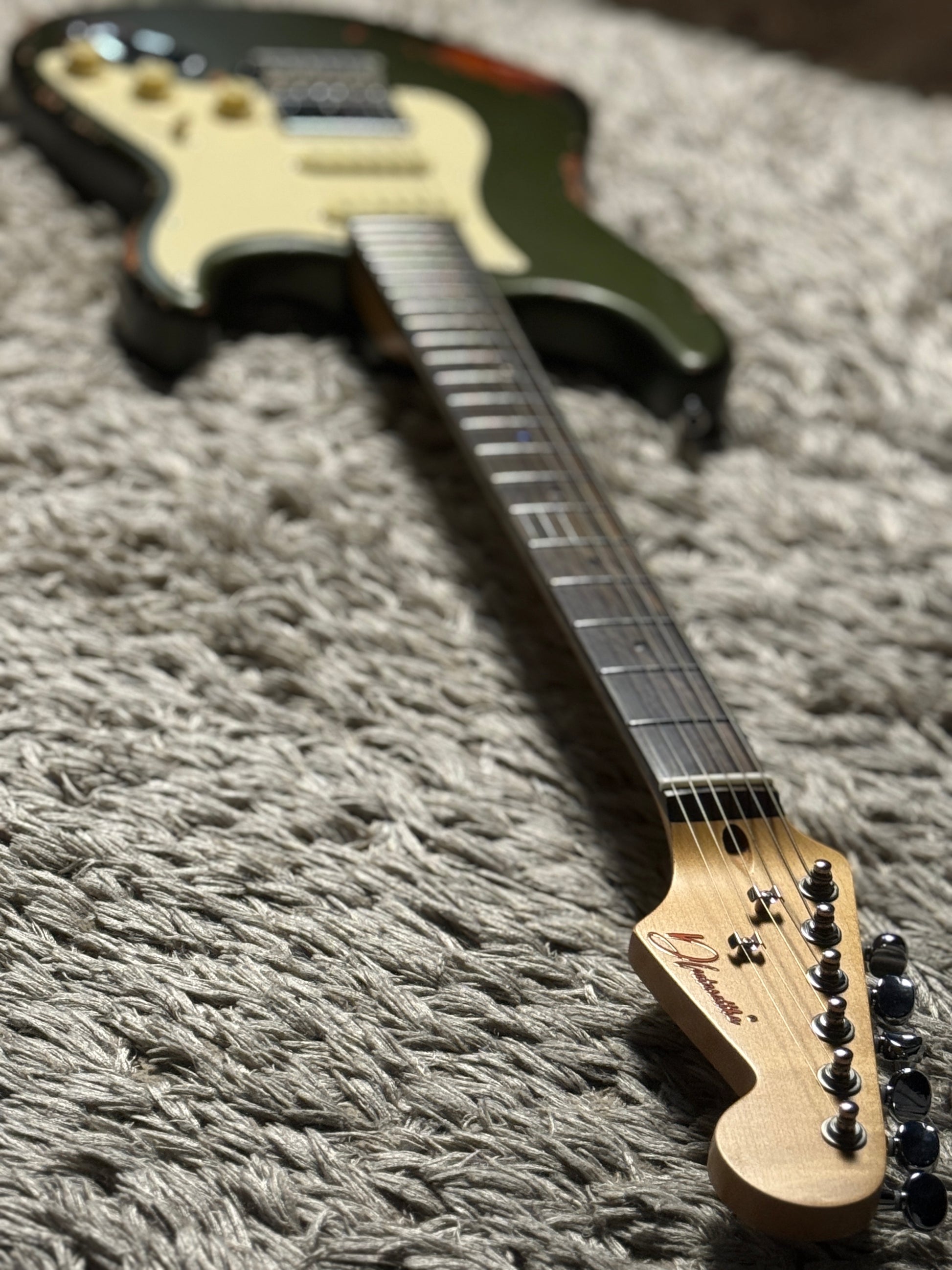 Dhatarattha Classic DST HSS in Godwood Green over Sunburst with Rosewood FB and Nitrocellulose Lacquer Relic