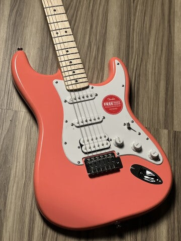 Squier Sonic Stratocaster HSS w/White Pickguard with Maple FB in Tahitian Coral
