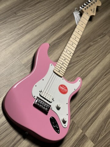 Squier Sonic Stratocaster HT H w/White Pickguard with Maple FB in Flash Pink