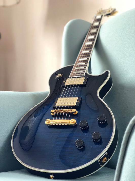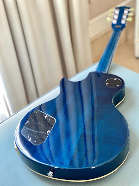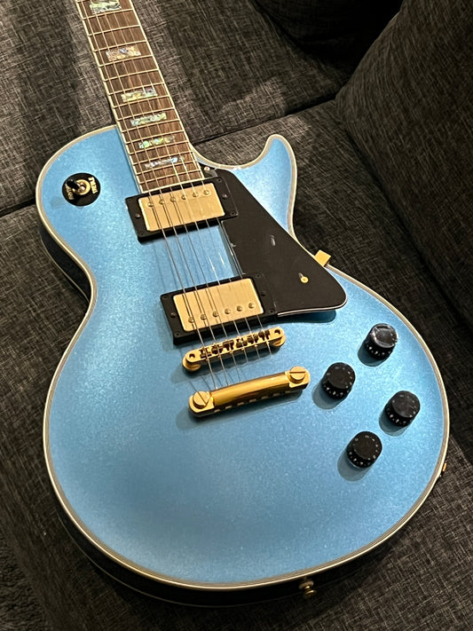 Tokai Love Rock Custom Shop LC-136S AB in Blue Sparkle with Abalone Block inlay
