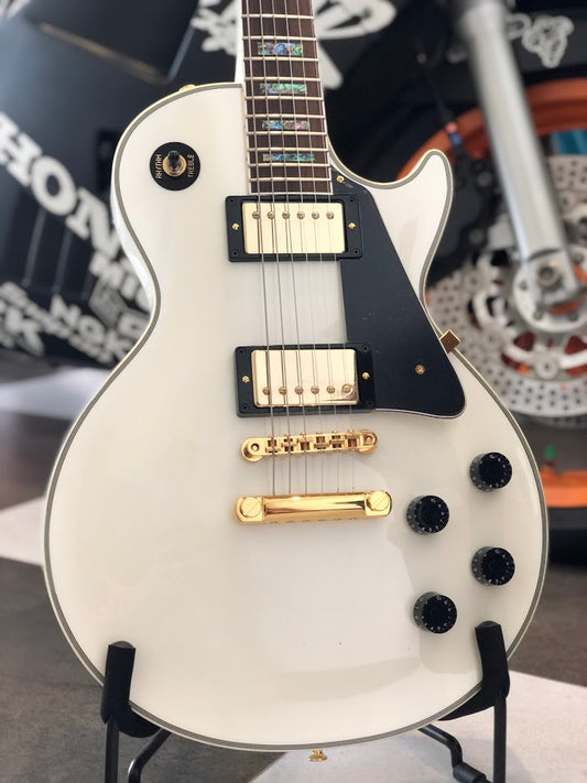 Tokai Love Rock Custom Shop LC-136S AB in White Sparkle with Abalone Inlay