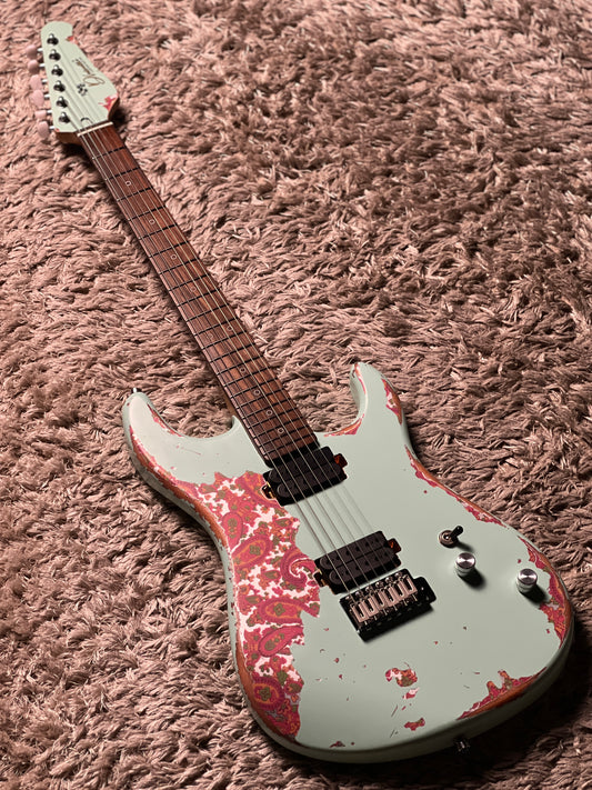 Dhatarattha Performance DST HH in Surf Green Over Pink Paisley with RW FB and Nitrocellulose Lacquer Relic