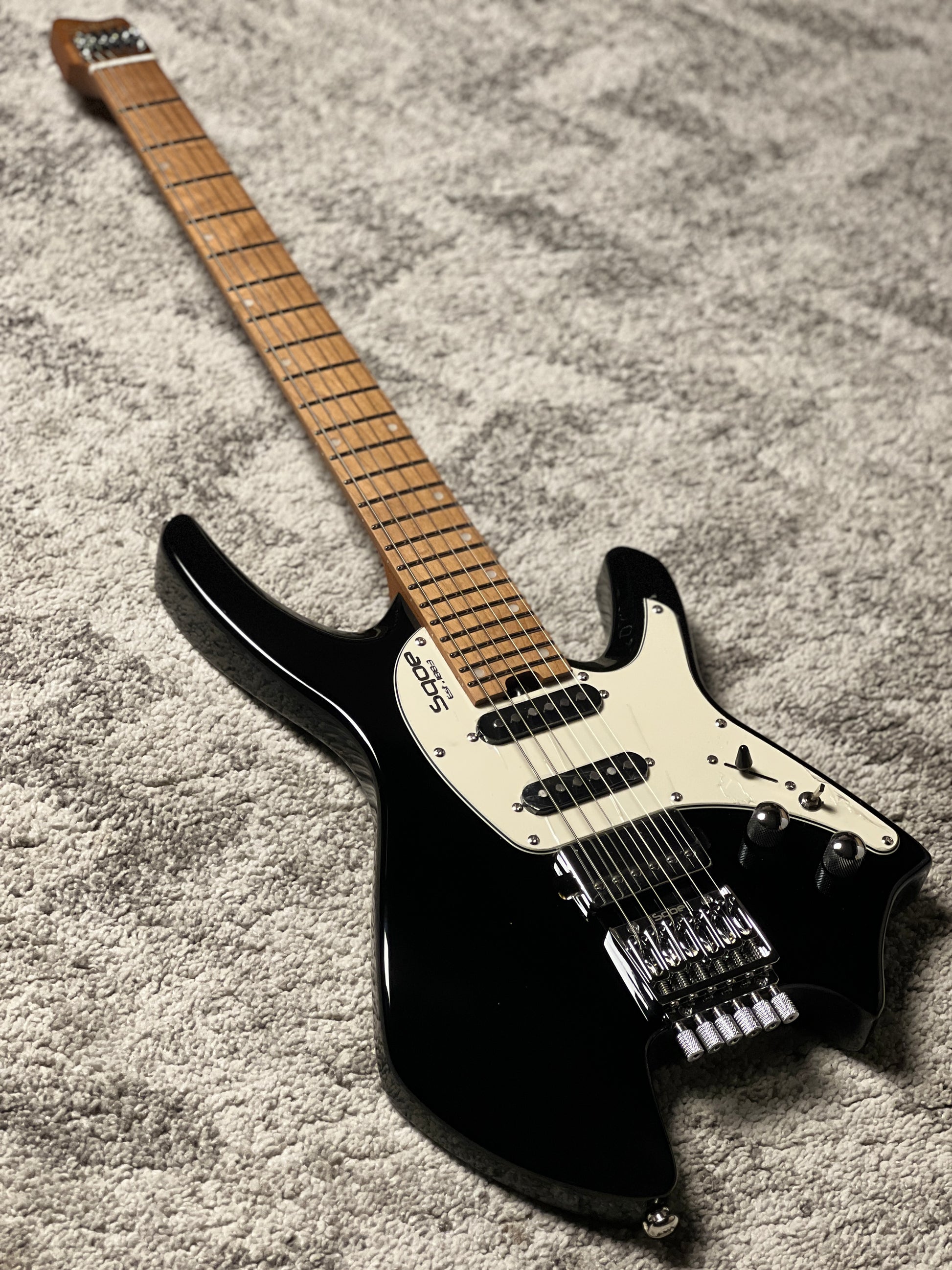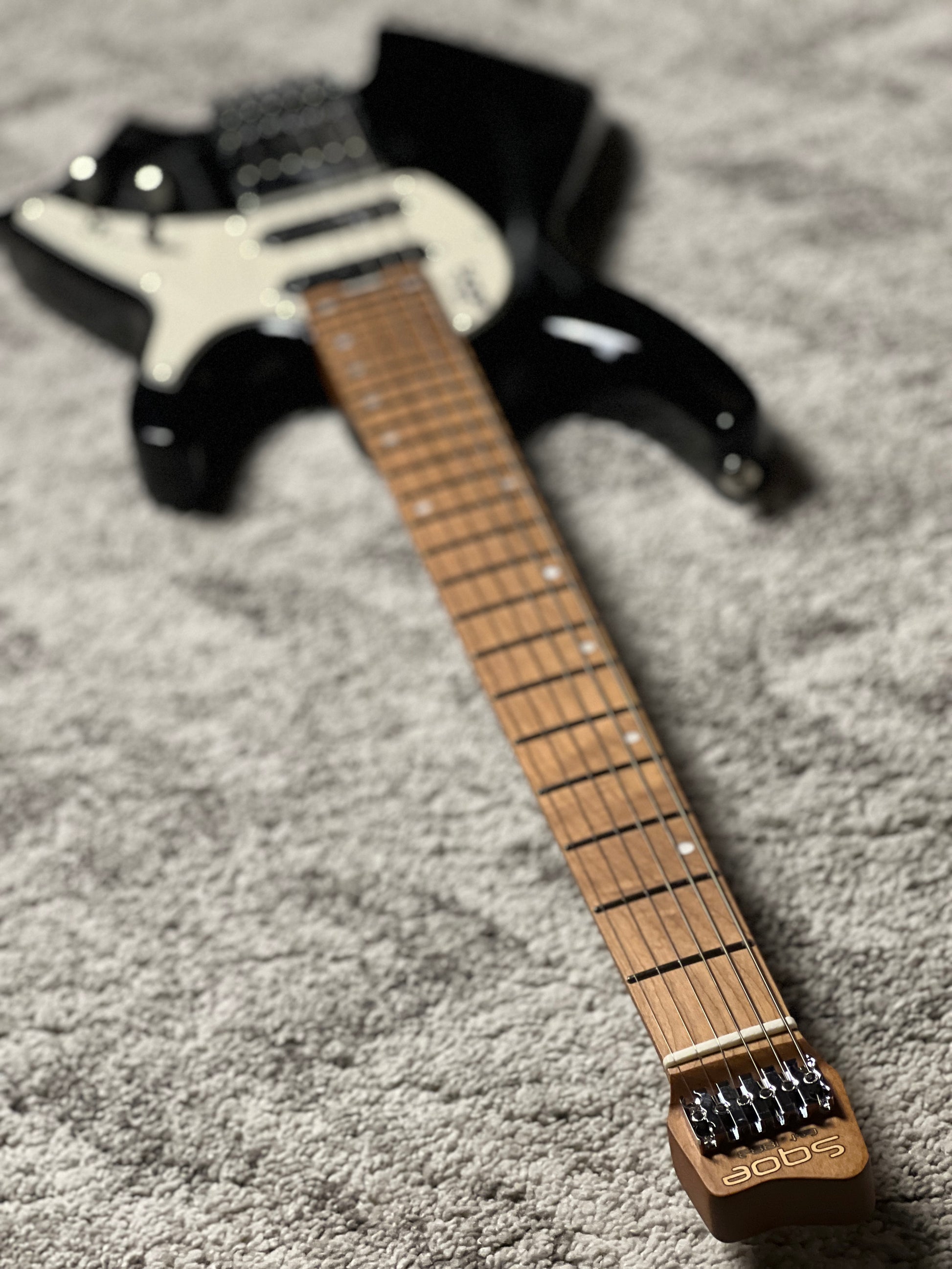 Lightweight Okoume body with SQOE customized headless bridge – compact, ergonomic, and stage-ready.