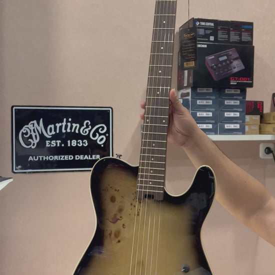 - • Solid Mahogany body with Poplar Burl Top