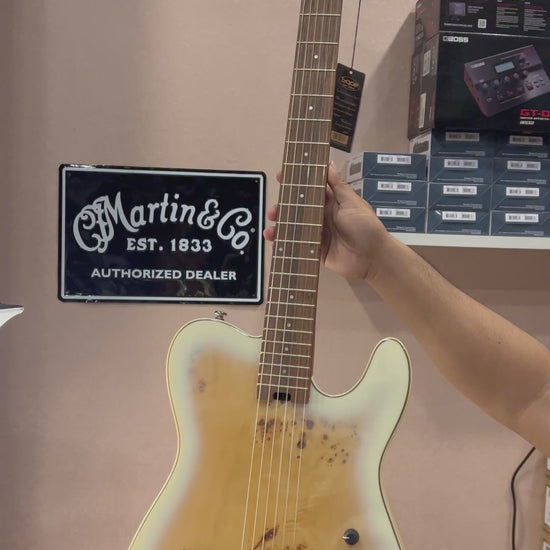 - • Solid Mahogany body with Poplar Burl Top