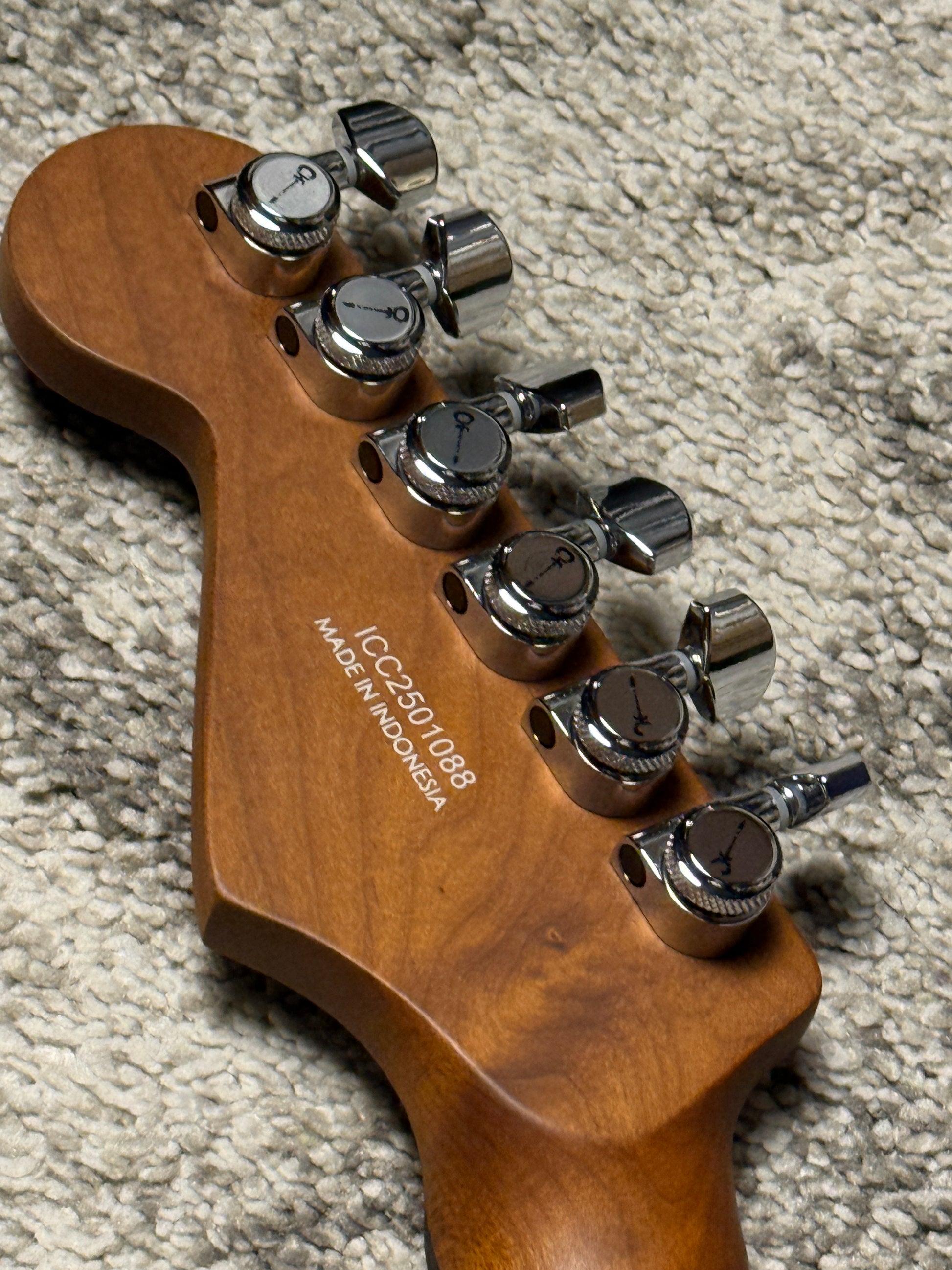 - Caramelized maple neck with graphite reinforcement in Charvel’s thin Speed profile