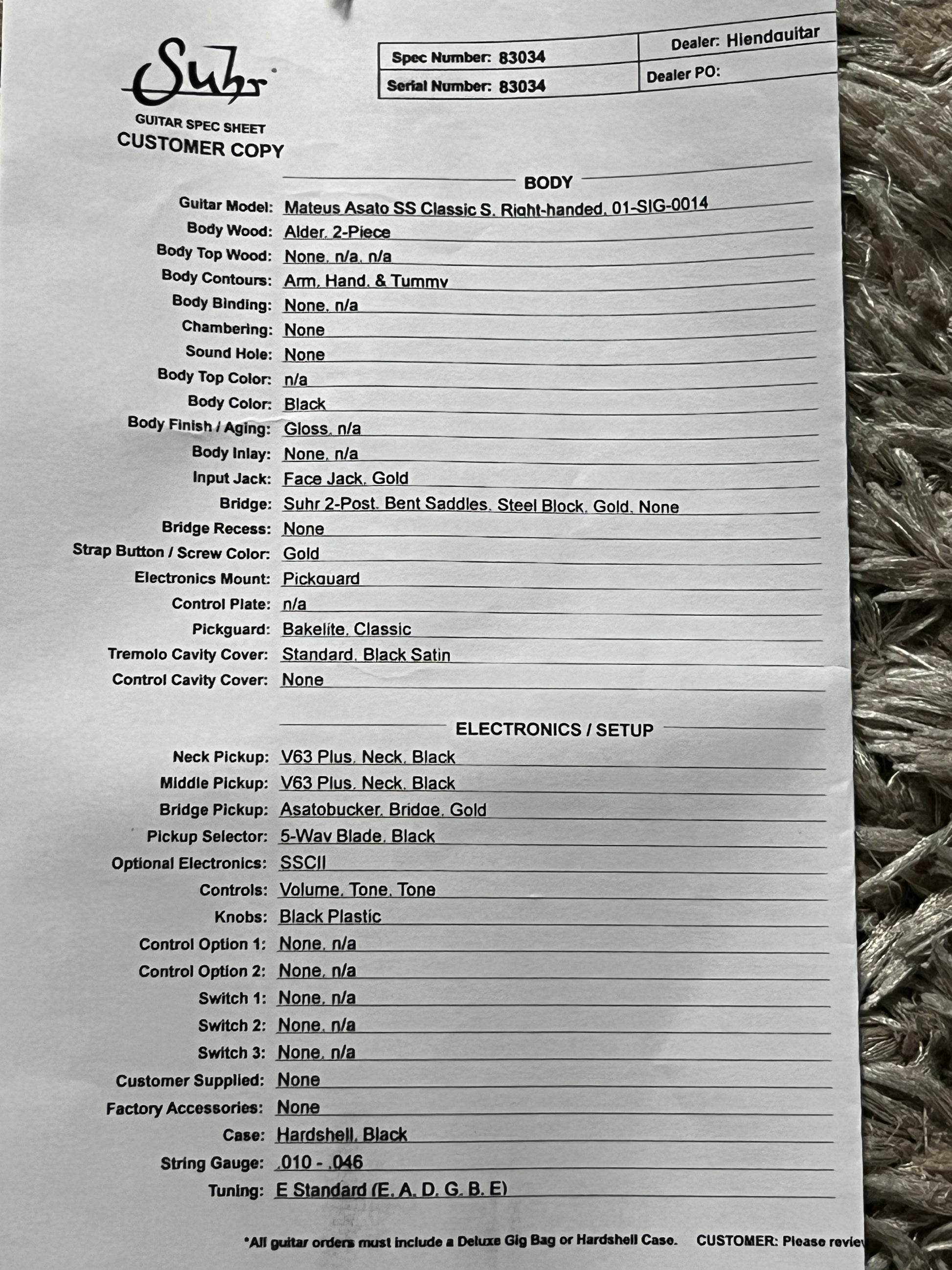SUHR Mateus Asato Classic S in Black Gloss 83034