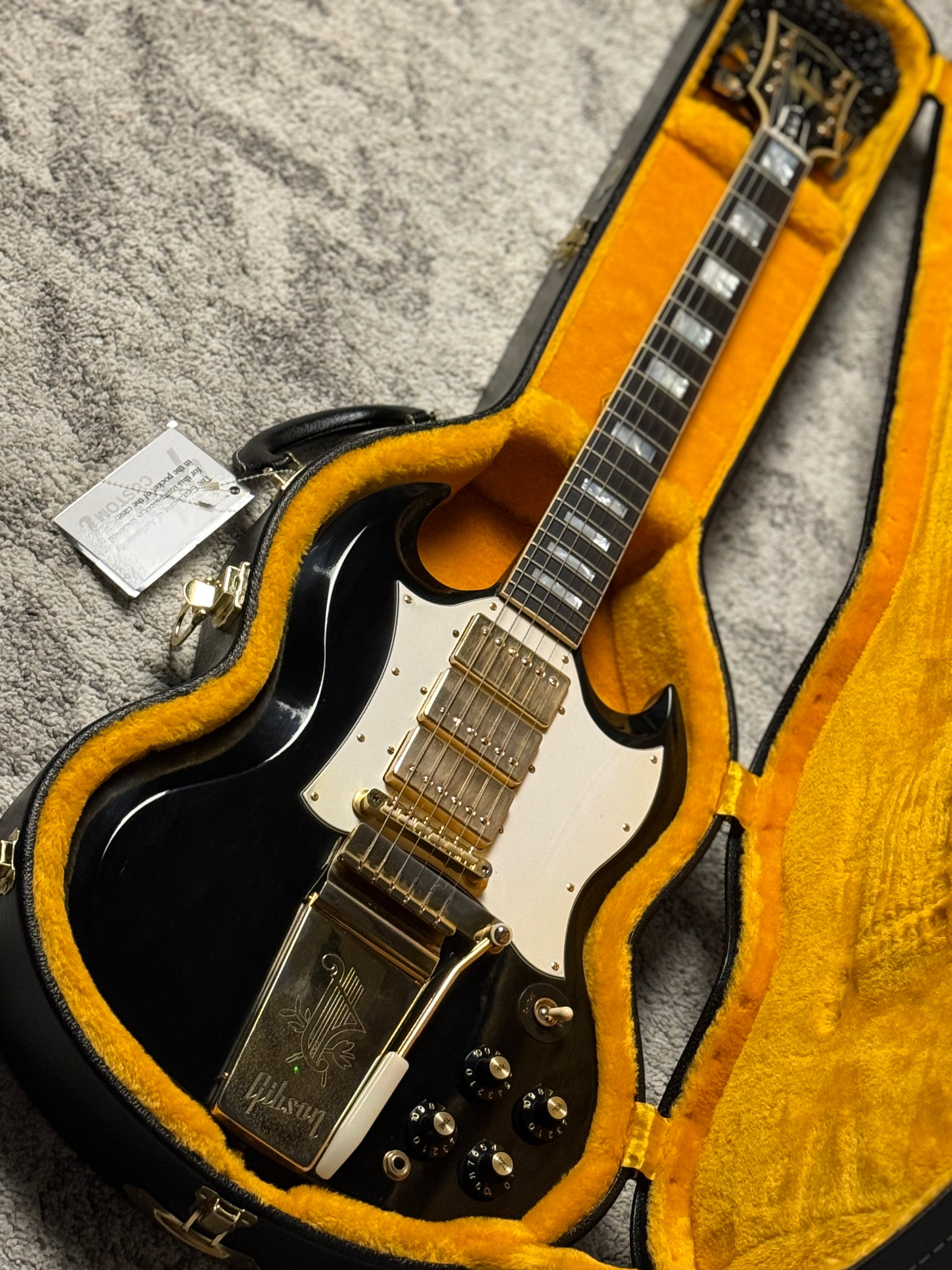 Gibson Custom Shop SG Custom 3-Pickup with Long Maestro Vibrola VOS in Ebony with case 000711