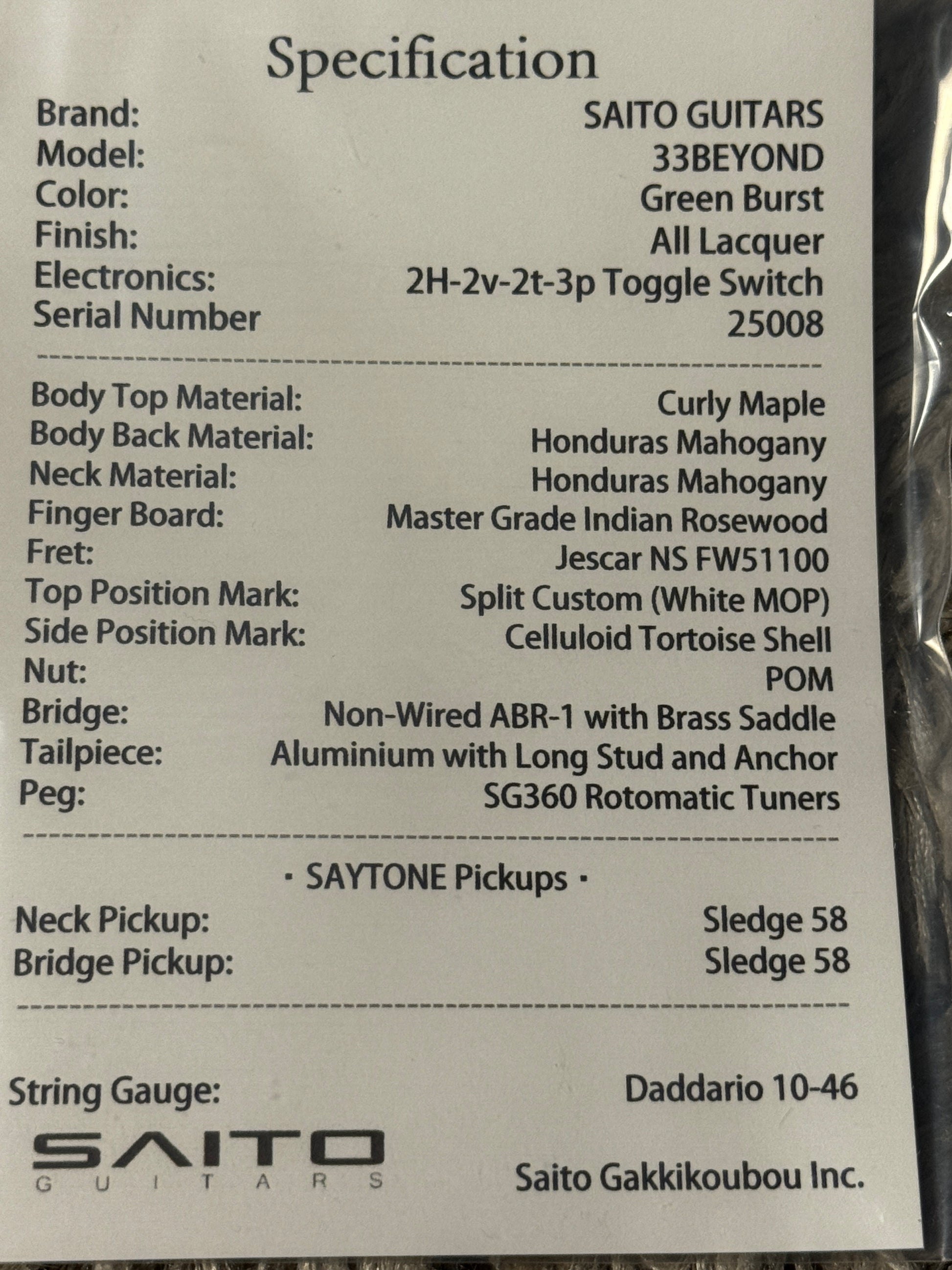 This guitar is Saito Japan’s ultra premium custom shop and hand numbered with very few pcs available worldwide!