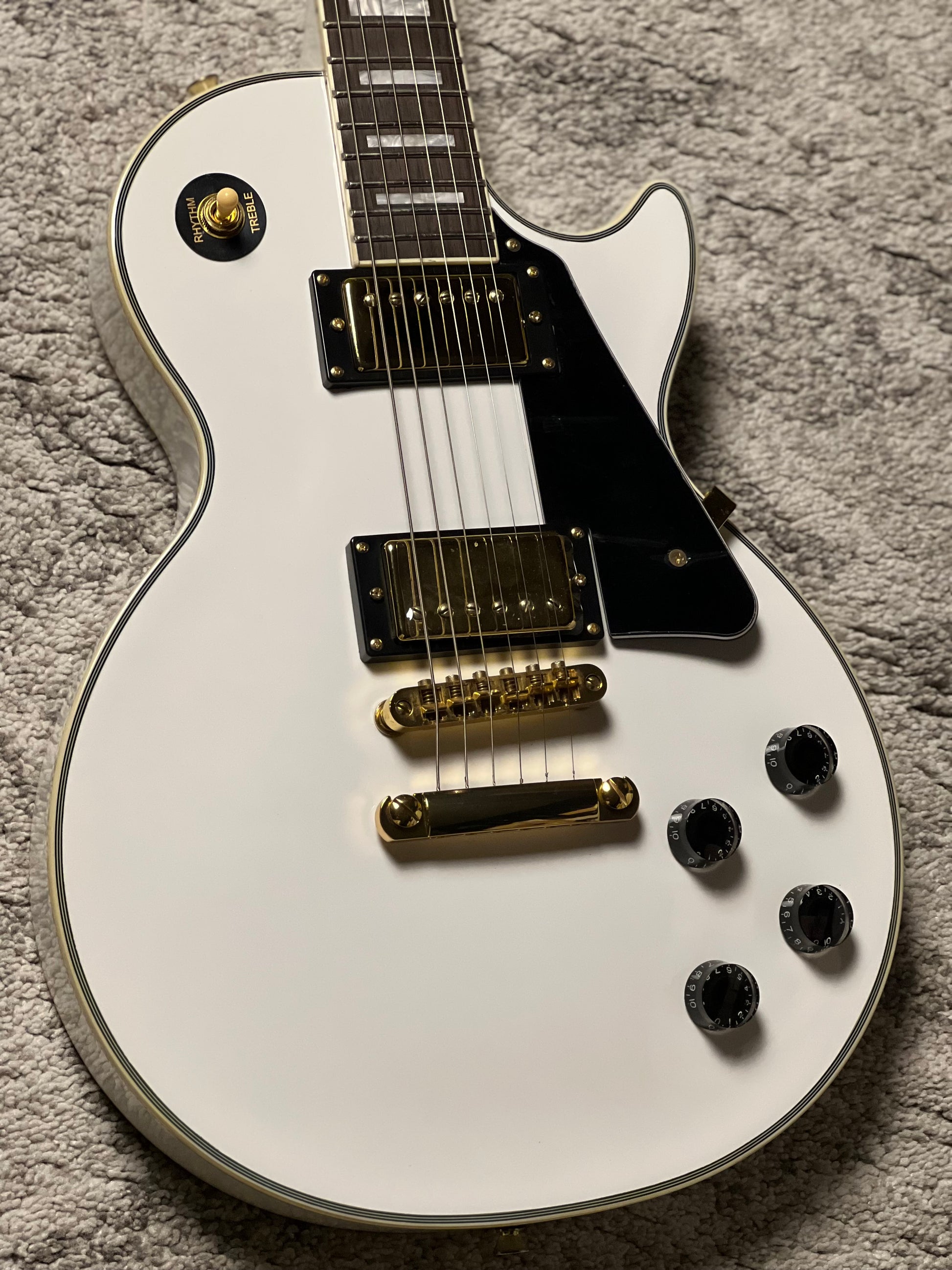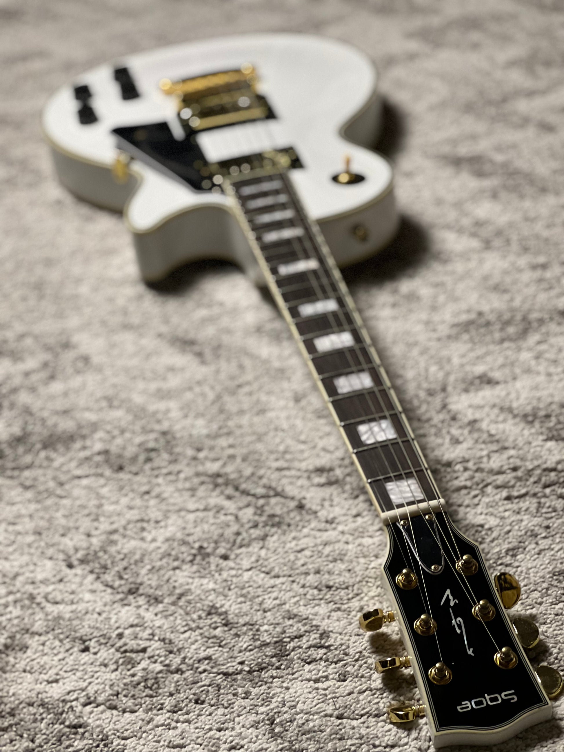 - เฟรตบอร์ดไม้โรสวูด รัศมี 12 องศา และฝังบล็อคมุก
