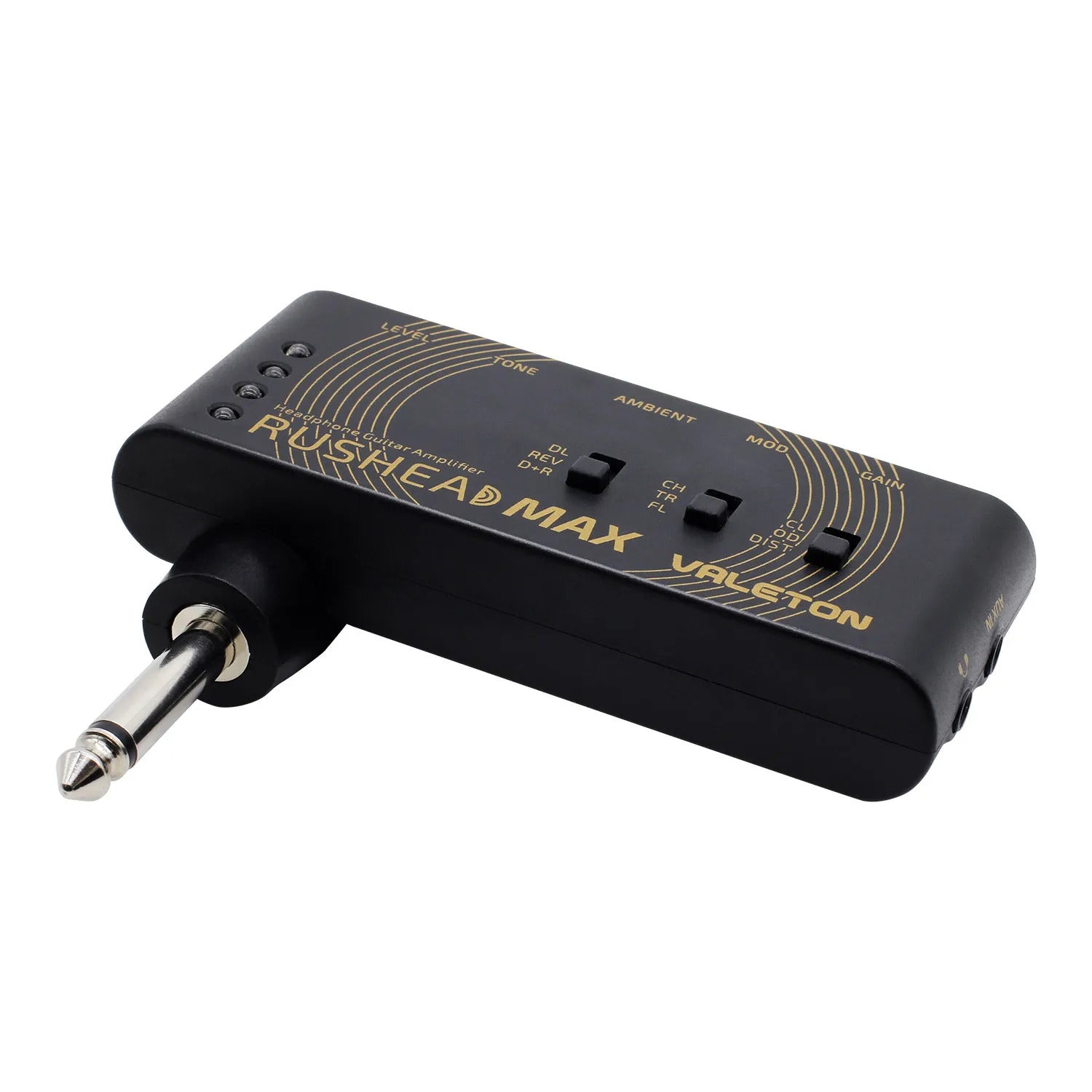 The Valeton Rushead Max Bass is a pocket-sized headphone amplifier perfect for silent practice! With a straightforward design that makes it effortless to just plug in and play with, the Rushead Max Bass offers inspiring tones based on some of the world's most coveted amps — each with a full range of tonal adjustment. You get everything you need for a clean natural sound, thick overdrive, and even a ferocious high-gain distortion!