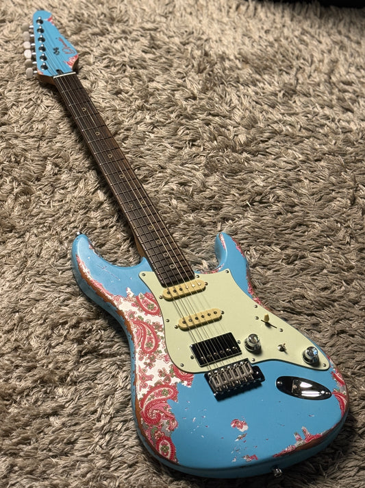 Dhatarattha Performance DST HSS in Daphne Blue over Pink Paisley with RW FB and Nitrocellulose Lacquer Relic