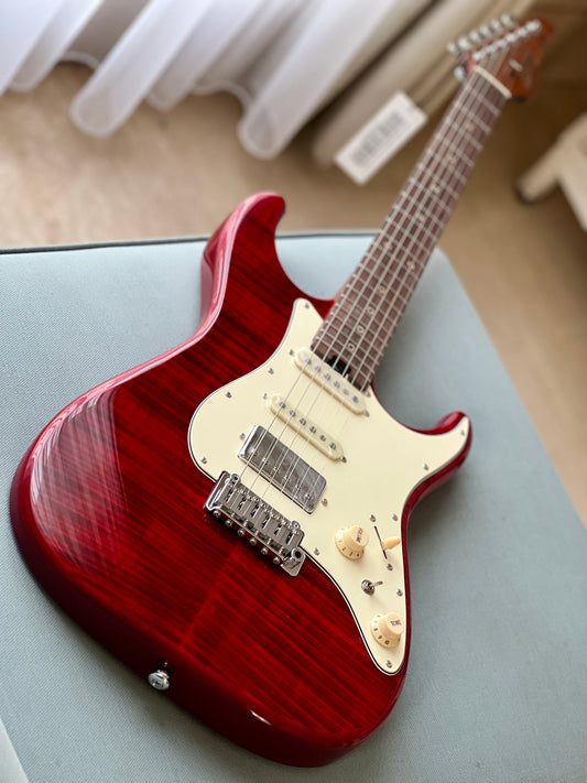 Soloking MS-11 Classic MKII in Transparent Red with Roasted Maple FB and 5A Flame Top Nafiri Special Run