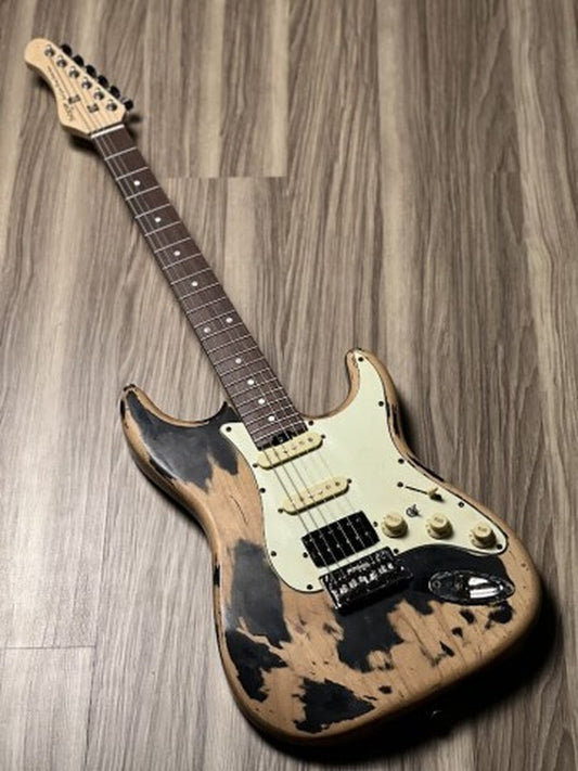 SQOE SEST970 HSS with Reversed Headstock in Black Heavy Relic