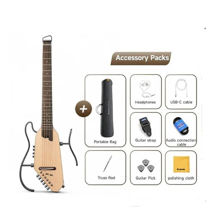 Spesifikasi Donner HUSH I PRO Acoustic Electric Travel Guitar Kit with Sound Effects, Natural