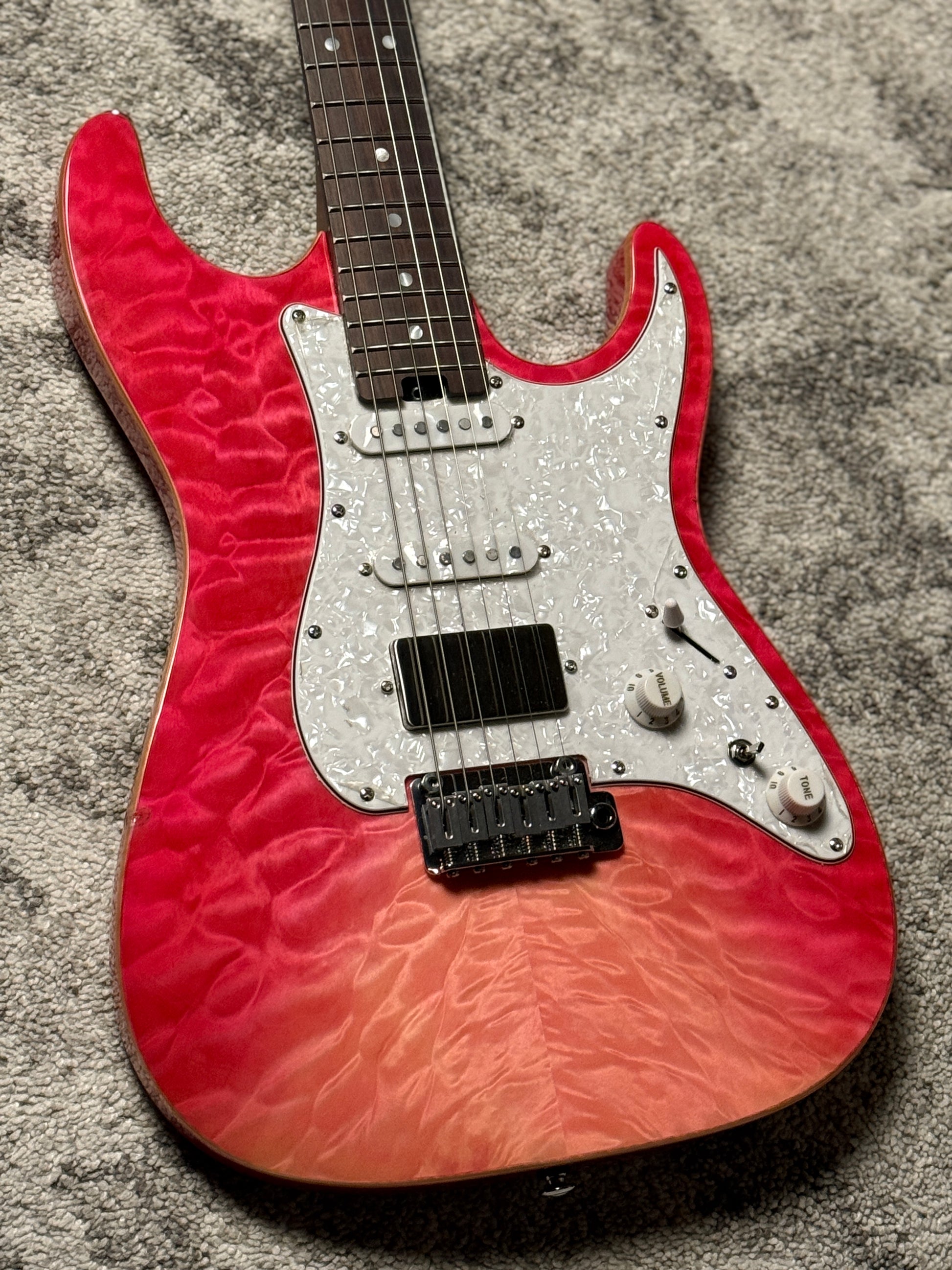 Soloking MS-1 Classic 22 HSS Quilt with Rosewood FB in Strawberry Wakesurf JESCAR (B STOCK)